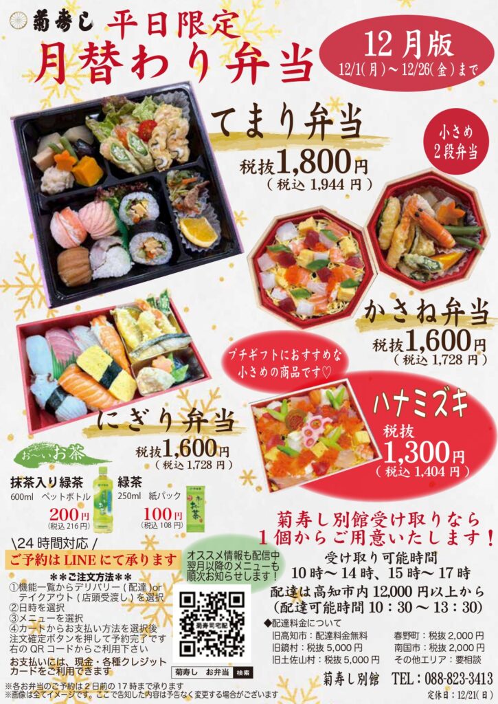 菊寿し別館店頭受け取りの場合は、17時までお受け取りいただけます✨