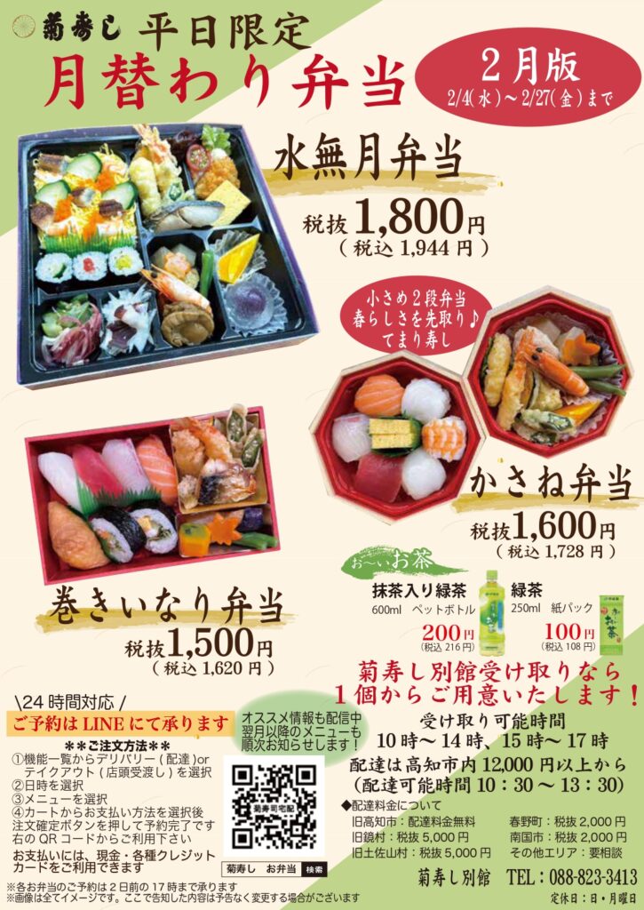 平日限定月替わり弁当2月版のご案内です♬