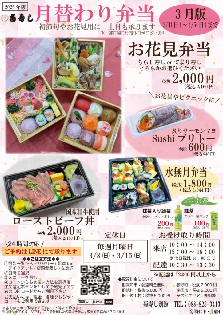 月替わり弁当3月版のご案内です♬