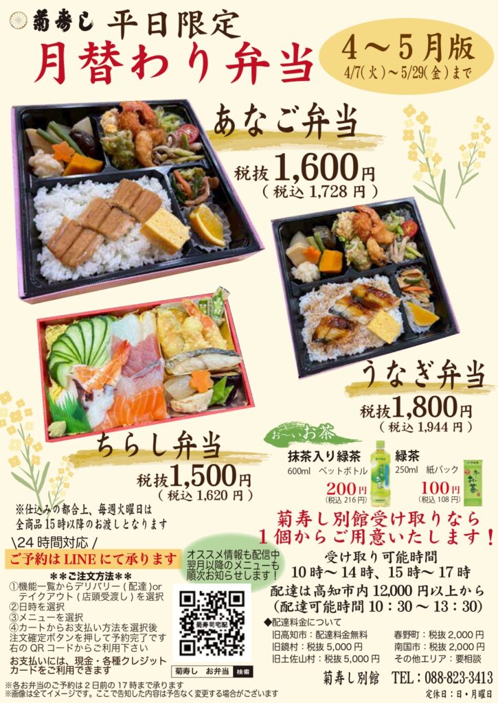 平日限定月替わり弁当4・5月版のご案内です♬
