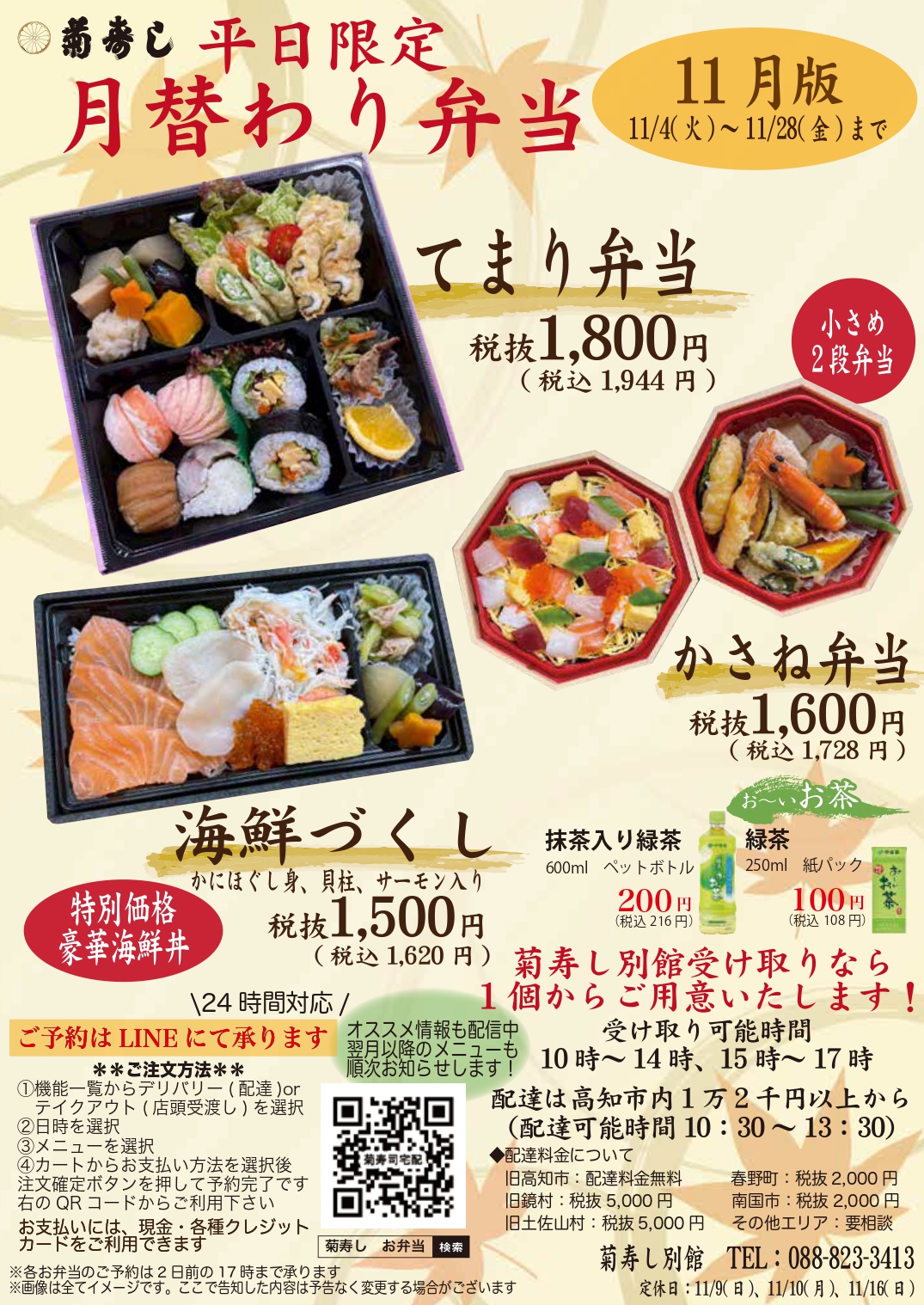 菊寿し別館店頭受け取りの場合は、10時~17時までお受け取りいただけます✨