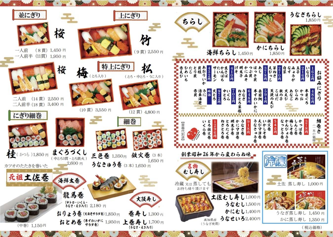 「お酒を飲みながら、寿司を楽しみたい」という幅広い年代の方にご利用いただいています。握りは定番のネタはもちろん、「かつお」や「きんめだい」など高知ならではの旬のものが揃っています。